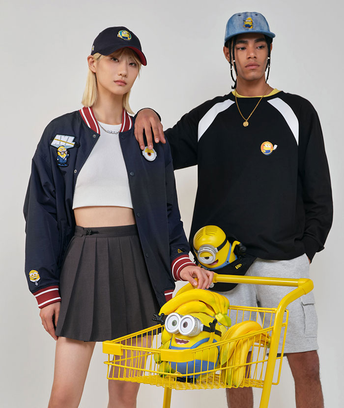 韩国街头品牌联名系列,包含纯色、拼色及迷彩帽款,搭配 T 恤单品,以简约设计与多元配色吸引年轻消费者。