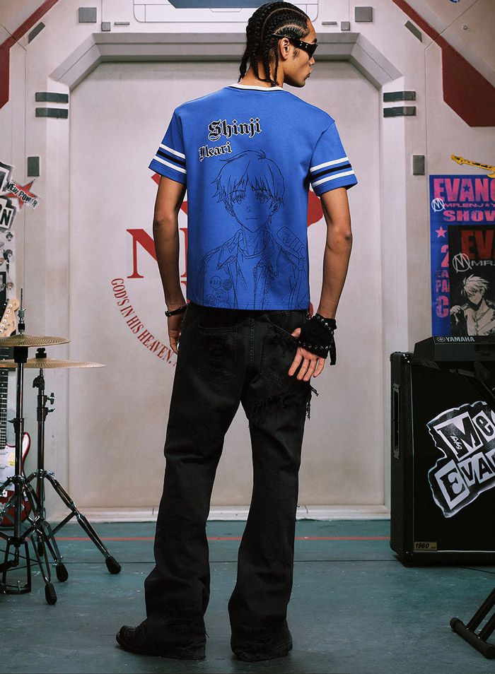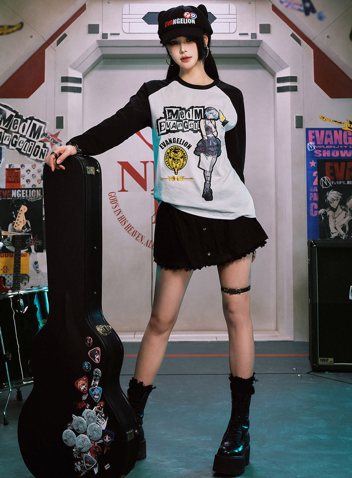 上图:MEDM x EVA NEVER END联名系列人物排版插肩袖圆领长袖T恤