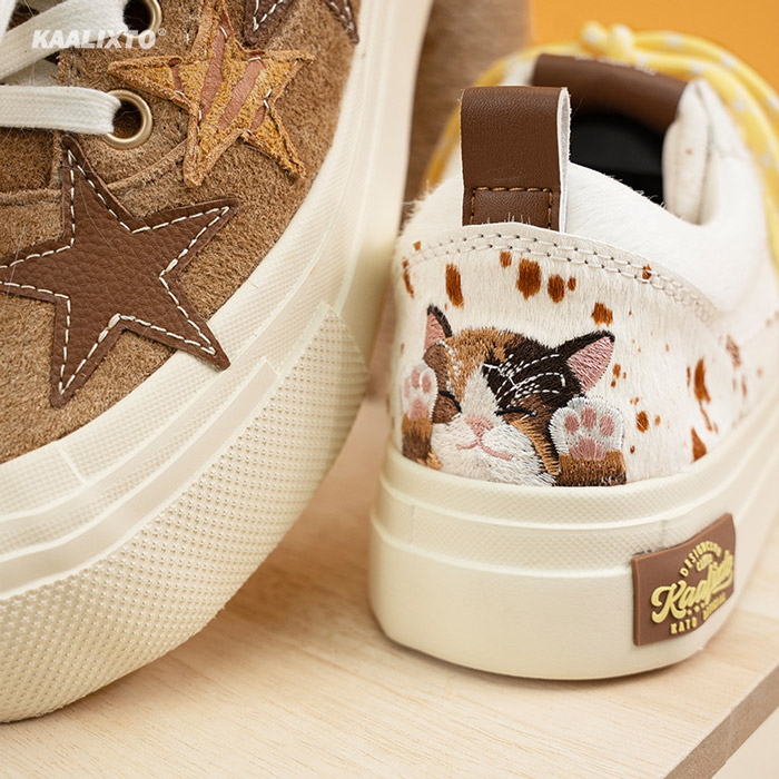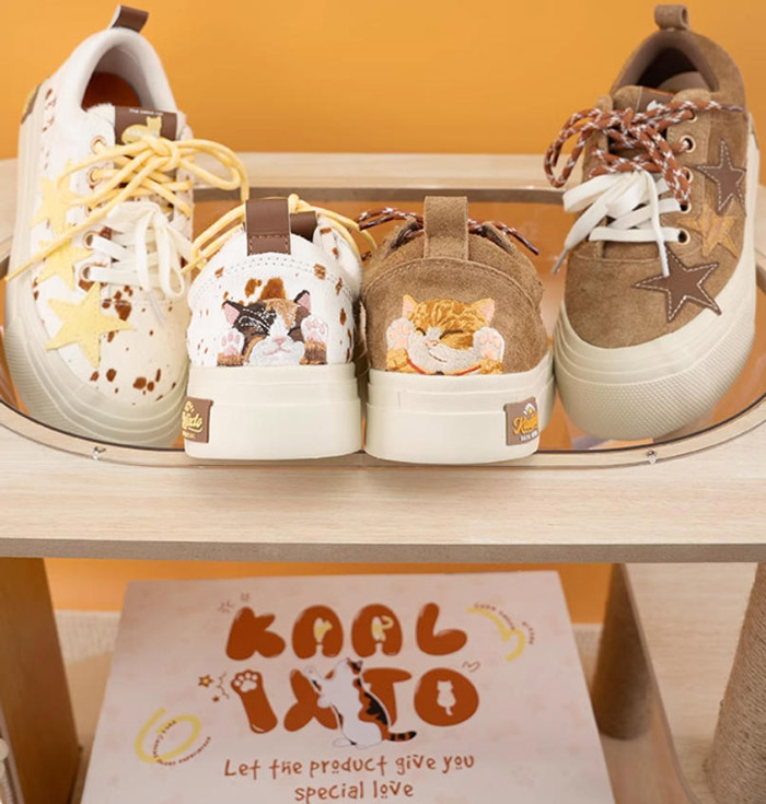 在街头潮流愈发追求 “硬核个性” 的当下,Kaalixto 此次选择以 “猫咪” 为灵感,实则是一次聪明的 “温柔突围”—— 它没有放弃品牌标志性的街头基因(星星元素、帆布鞋廓形),却通过马毛的软糯、猫爪印的萌趣、刺绣的细腻,为街头风注入了治愈感。