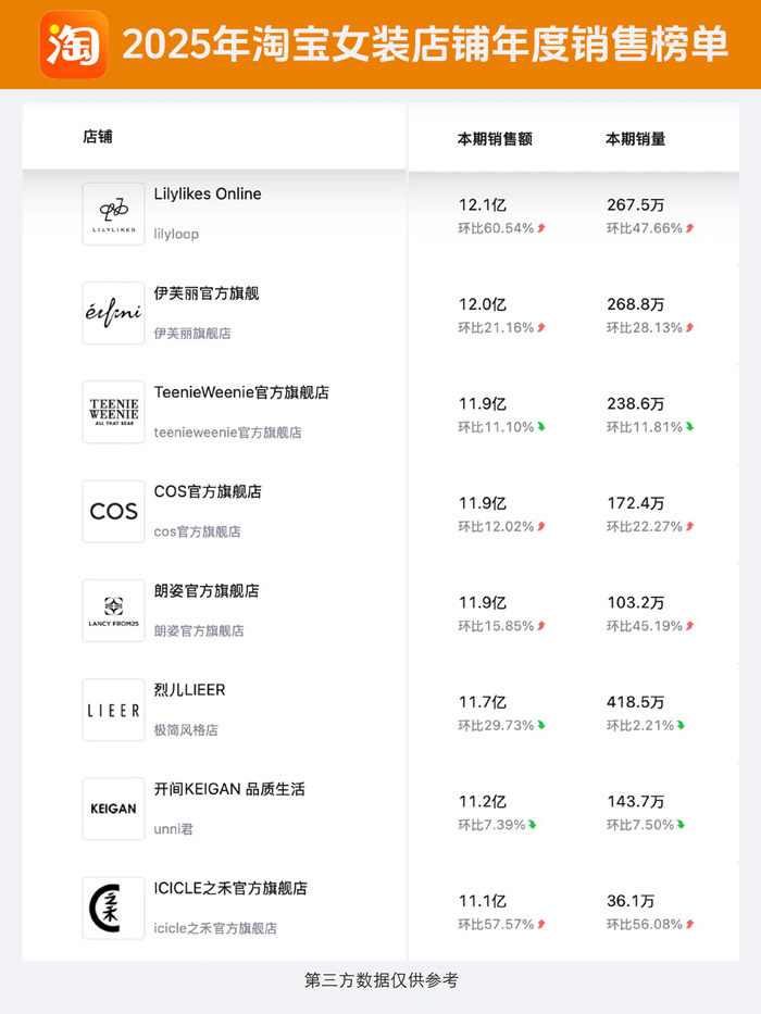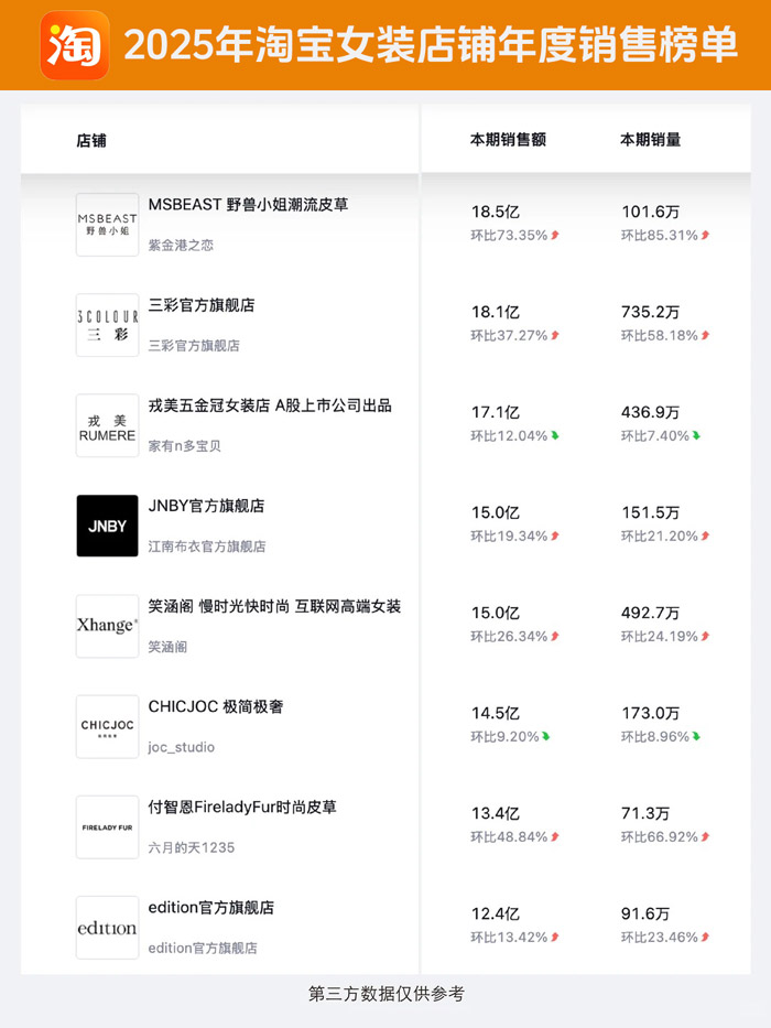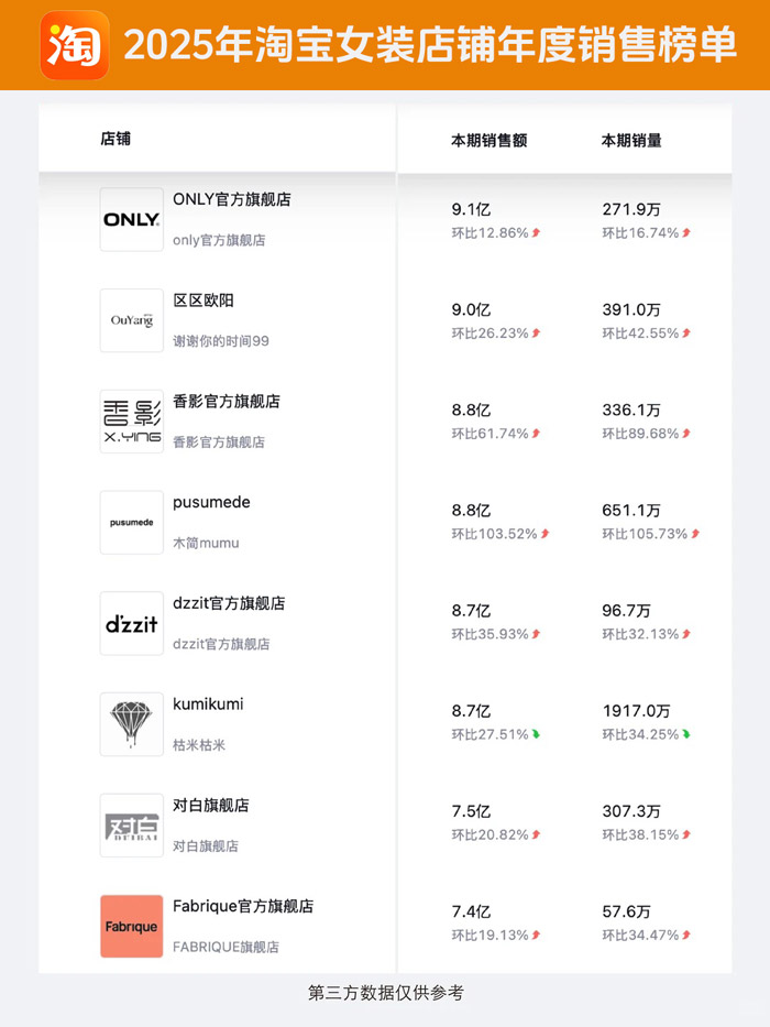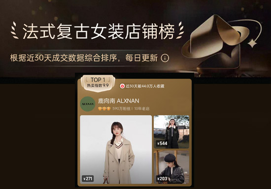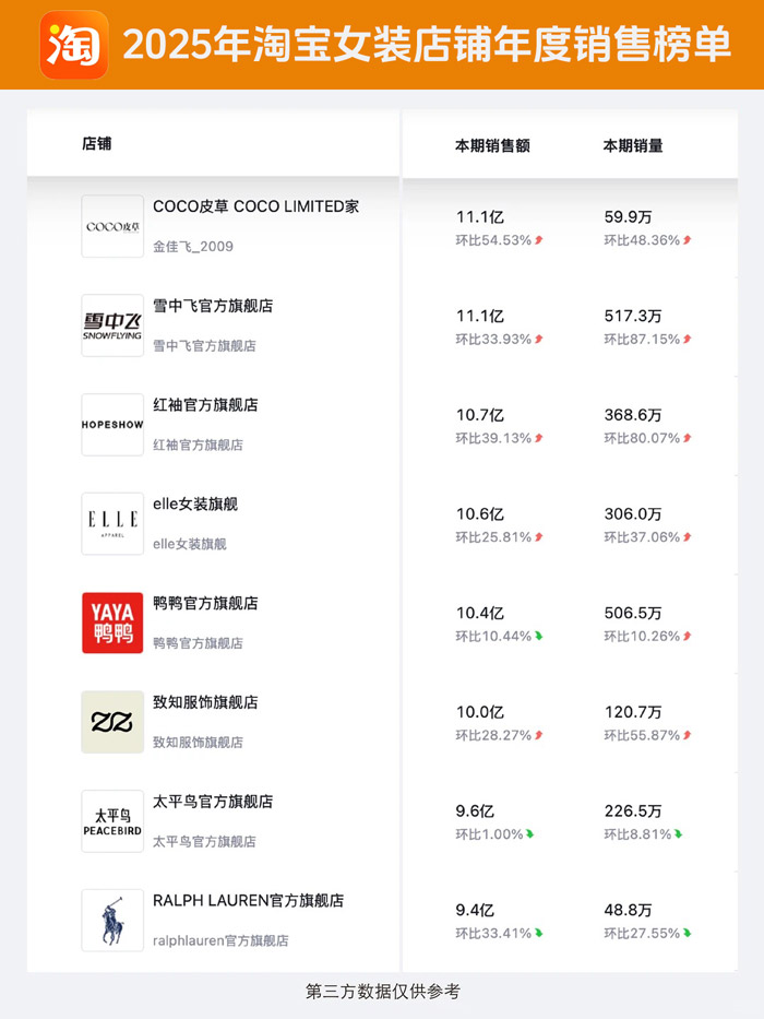 2025年淘宝女装店铺年度销售榜单