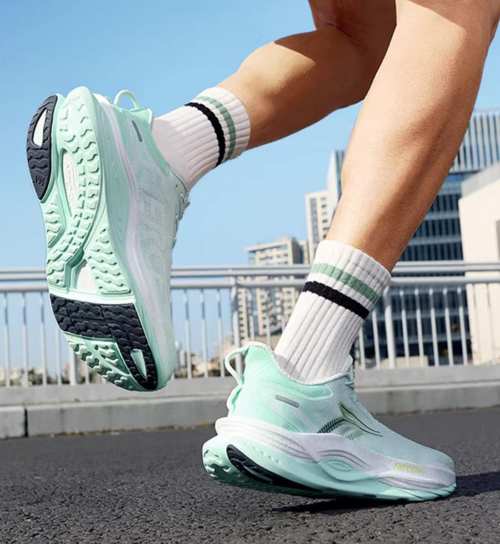 一双好的日常跑鞋,既要兼顾专业性能,更要在实用细节上拉满,赤焰5.0在这一点上同样表现亮眼。双密度支撑大底的加持,让鞋款的支撑性与耐用性双向在线,设计师将分块橡胶精准布局在鞋身最易磨损的位置,既提升了大底的地面摩擦力,又让耐用性得到针对性强化,无论是城市通勤的水泥路面,还是慢跑的塑胶跑道,都能轻松适配。而鞋身多个位置的反光设计,更是贴心满满,夜间夜跑时的视觉辨识度大幅提升,为运动安全再加一道保障,让夜跑爱好者能放心奔赴每一次户外锻炼。