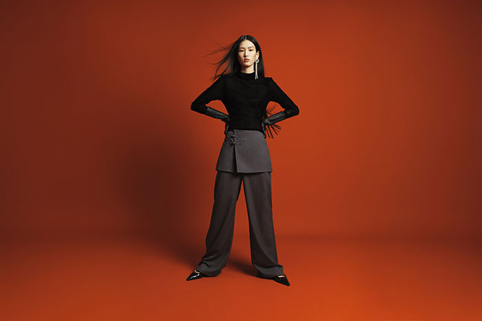 女装系列以简约廓形为基底,将东方意蕴与当代剪裁巧妙融合:精巧盘扣点缀衣襟,华美织锦铺陈细节,青瓷纹样暗藏雅致,立体压褶勾勒流动线条,丰盈提花肌理承载 “吉祥如意” 的新春祈愿。从软糯亲肤的套头毛衣到优雅灵动的裙装,再到率性洒脱的裤装,多元款型适配通勤、聚会、出游等多重场景,让女性在节日里既能彰显个性,又能轻松切换自在状态。