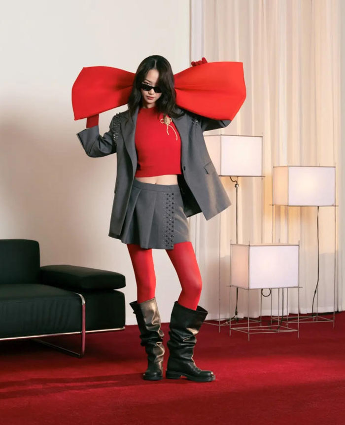 单品设计更是打破了 “节日着装” 的刻板印象:卫衣保留了休闲随性的本质,却选用奢华面料提升质感,日常穿搭也能自带仪式感;夹克外套以简洁线条勾勒摩登轮廓,绳结元素作为点睛之笔,利落中透着巧思;体感针织上衣随身形自然延展,将女性的柔美曲线与独立姿态巧妙平衡。每一件单品都拒绝被单一标签定义,正如当代女性从不局限于某一种身份 —— 她们可以是职场上的干练先锋,是生活中的浪漫主义者,也是节日里的温暖陪伴者,而这套系列,正是她们多元身份的最佳表达。