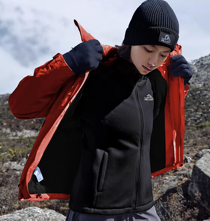 如果说外壳是冲锋衣的 “防护铠甲”,那么内胆就是其 “温感核心”,伯希和「山野」三合一冲锋衣在这一维度的设计,尽显人性化与实用性。它提供鹅绒与抓绒两种内胆选择,满足不同人群、不同场景的保暖需求,无论是低温环境下的户外探险,还是日常通勤的轻保暖需求,都能精准匹配。其中经典2.0抓绒内胆尤为亮眼,280g蓄热摇粒绒带来绵密的保暖体验,能实现 24 小时持续锁温,让秋冬穿着告别寒冷;而实测洗前 3.3 的半衰期抗静电表现,更是解决了抓绒衣物易起静电的通病,让日常穿着的舒适感大幅提升。两种内胆与外壳的科学组合,让这件冲锋衣实现了 “一衣穿四季” 的可能,春搭外壳应对微凉,夏配薄内胆抵御风雨,秋穿抓绒内胆保暖,冬搭鹅绒内胆抗寒,真正做到物尽其用。