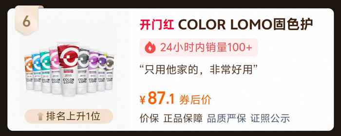 榜单后半段同样看点纷呈,多款单品迎来排名攀升,在细分护发赛道中崭露头角,尽显增长潜力。卡洛美固色护发素发膜券后价 87.1 元,排名上升 1 位,近 24 小时销量 100+,其精准瞄准染烫人群的固色需求,直击护发细分痛点,成为染烫星人的心头好。