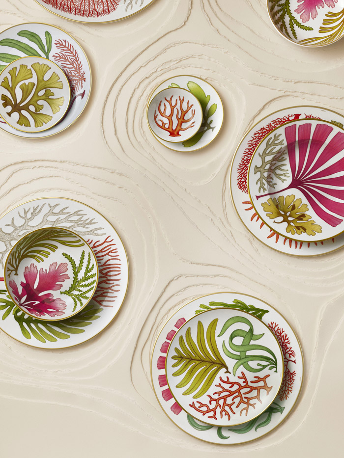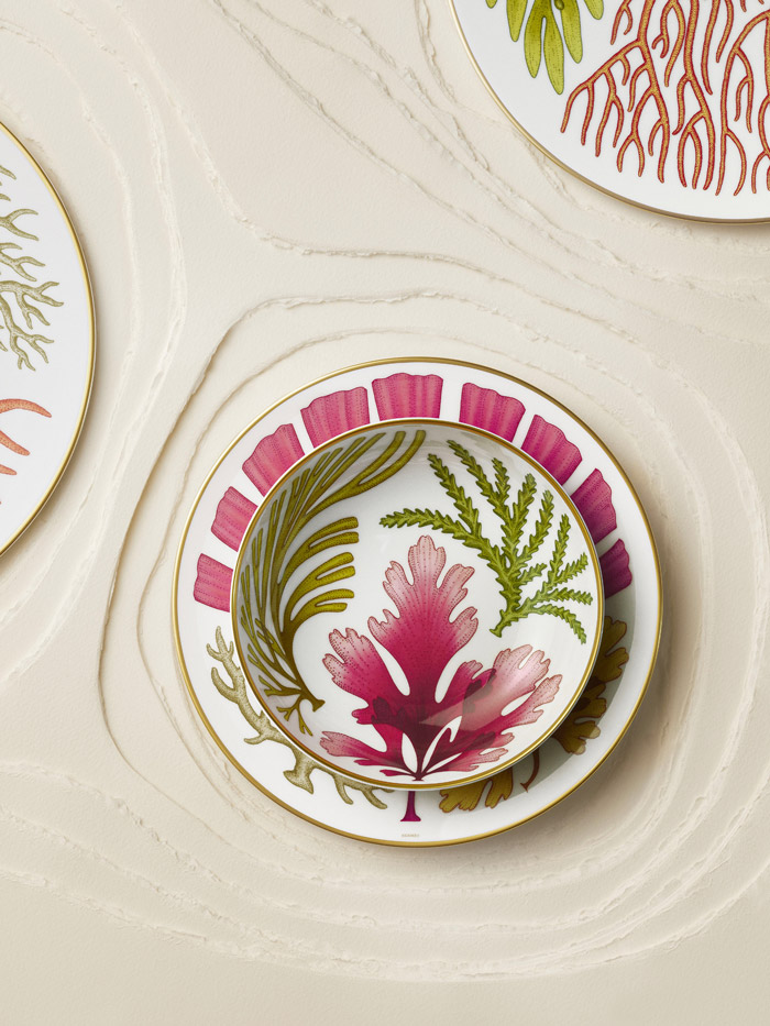 爱马仕始终坚信,器物是生活美学的载体。Natures Marines 海洋秘境餐磁系列没有刻意张扬奢华,而是将对自然的敬畏、对艺术的执着,悄悄融入每一件作品的肌理。当盛着佳肴的器皿置于餐桌,仿佛将威尔士海岸线的潮汐气息与园艺图鉴的复古韵味一同带入室内,让使用者在三餐四季中,既能触摸到瓷质的温润,又能感受到海洋的辽阔与艺术的深邃。