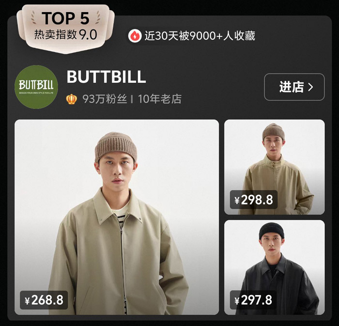 热卖指数:9.0 | 近 30 天收藏人数:9000+ | 粉丝规模:93 万 | 开店时长:10 年老店