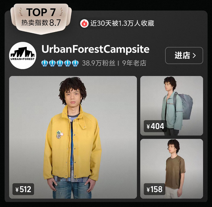 场景化穿搭成新赛道:UrbanForestCampsite 的露营氛围感穿搭、NORYBRAND 的城市户外融合款,证明了 “场景化” 正在成为品牌破圈的关键,消费者不再只买一件衣服,而是在为一种生活方式买单。