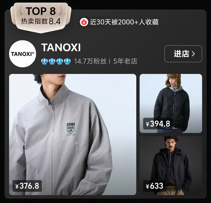 作为仅开店 5 年的 “新锐品牌”,TANOXI 凭借 “简约不简单” 的设计理念,精准击中了不喜欢过度张扬的消费者需求,在山系男装市场中占据了细分赛道的一席之地。