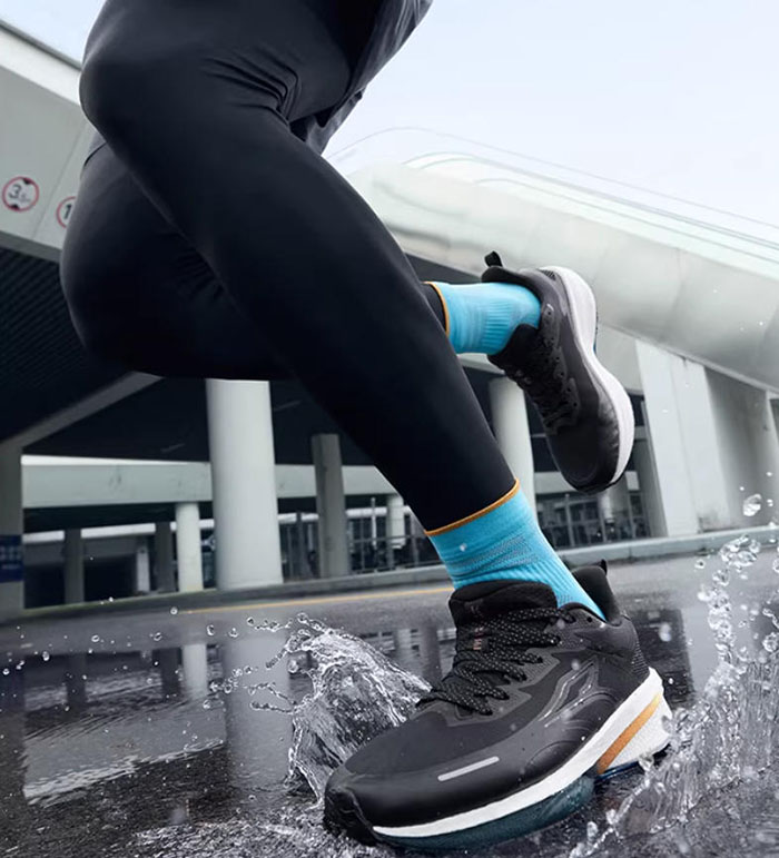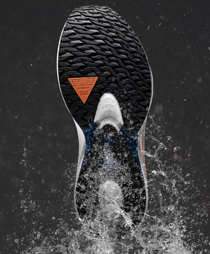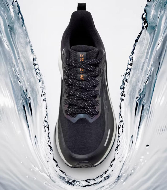 自2017年雨屏1.0首代防泼水科技问世,361便始终围绕秋冬雨雪天气的户外需求打磨产品,历经数代升级,如今迎来的雨屏8.0版本,更是在防泼水、缓震、抗扭、止滑等多个核心维度完成进阶,真正实现了全天候的穿搭适配性,让一双跑鞋就能搞定秋冬雨天的通勤与运动需求,彻底摆脱场景切换的穿搭烦恼。