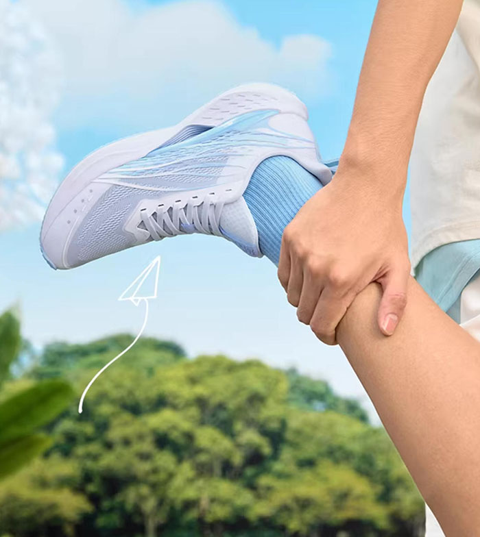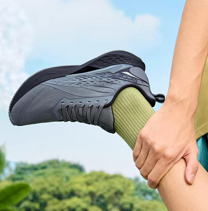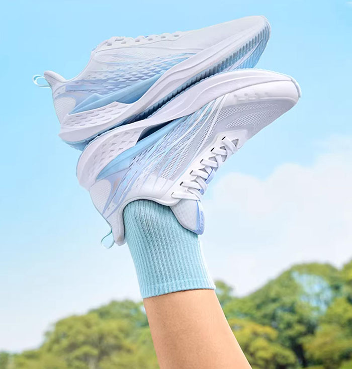 上脚第一感受便是极致轻量化,单鞋几乎没有负重感,穿在脚上仿佛 “脚鞋合一”,日常走路完全不会有累脚的情况;夏日 30℃+ 的天气里慢跑,鞋面的透气性表现亮眼,全程没有出现闷脚、捂汗的情况,脚部始终保持干爽,这也是它最打动我的一点。
