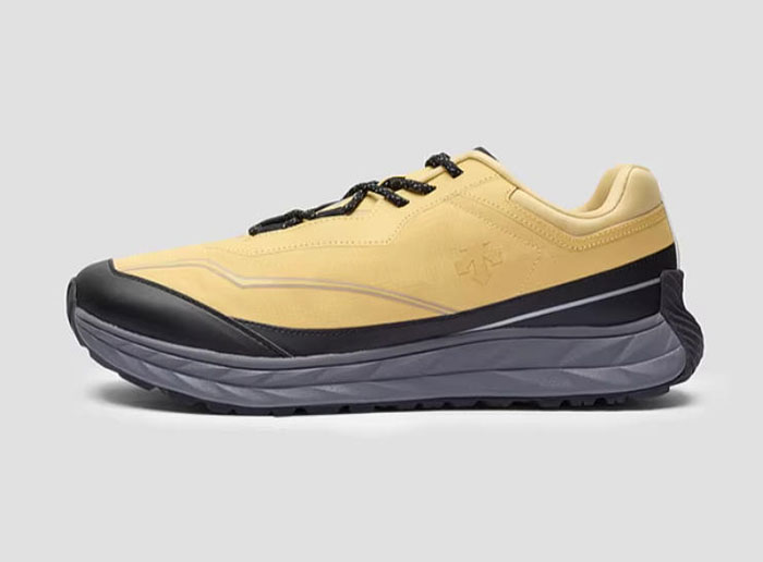 场景适配与配色设计上,TERRAIN-D跑鞋覆盖多元生活场景,满足不同人群的穿搭偏好。全黑武士款通体纯黑基底,辅以银色 Logo 与反光线条点缀,风格低调沉稳,适配都市通勤、商务休闲等正式与半正式场景,打造简约高级的穿搭格调;浅黄撞色款以暖黄色鞋身搭配黑色防撞头与中底,色彩明快富有活力,适配户外出行、日常休闲等场景,为穿搭注入鲜明个性。
