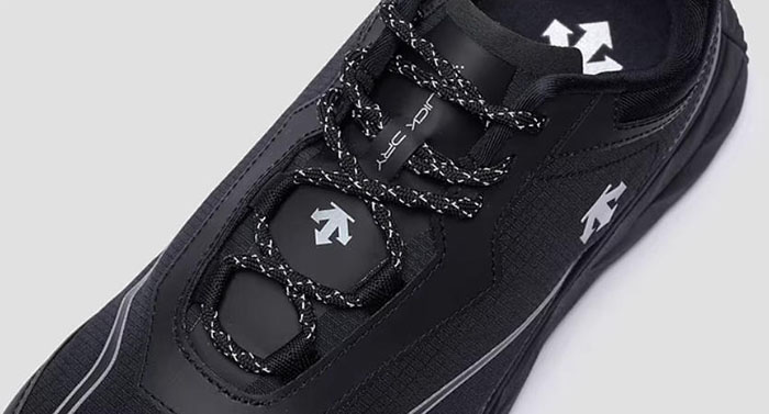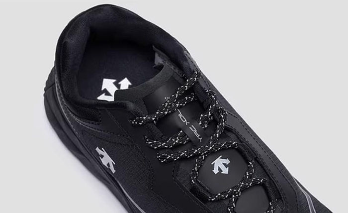 在外观设计上,TERRAIN-D 跑鞋延续迪桑特标志性的极简工业美学,以流畅利落的几何线条勾勒出利落鞋身轮廓,兼具力量感与精致感。鞋身侧面的品牌银色箭头 Logo 是核心视觉符号,全黑款以高对比度呈现,成为低调造型中的视觉焦点;浅黄款采用同色系压印工艺,低调内敛又暗藏品牌辨识度,完美平衡高级感与专属标识。鞋头搭载 TPU 防撞包边,既提升鞋身耐用性,抵御日常行走、轻度户外的磕碰磨损,又强化整体结构感;鞋侧嵌入 3M 反光条,为夜间通勤、夜跑提供安全防护,同时丰富鞋身层次细节;定制黑白斑点反光鞋带搭配印有 “XCK DRY” 字样的专属鞋带袢,传统系带结构兼具设计感与实用性;鞋舌与鞋垫均印有品牌箭头 Logo,以细节传递品牌 DNA,彰显高端运动品牌的匠心工艺。