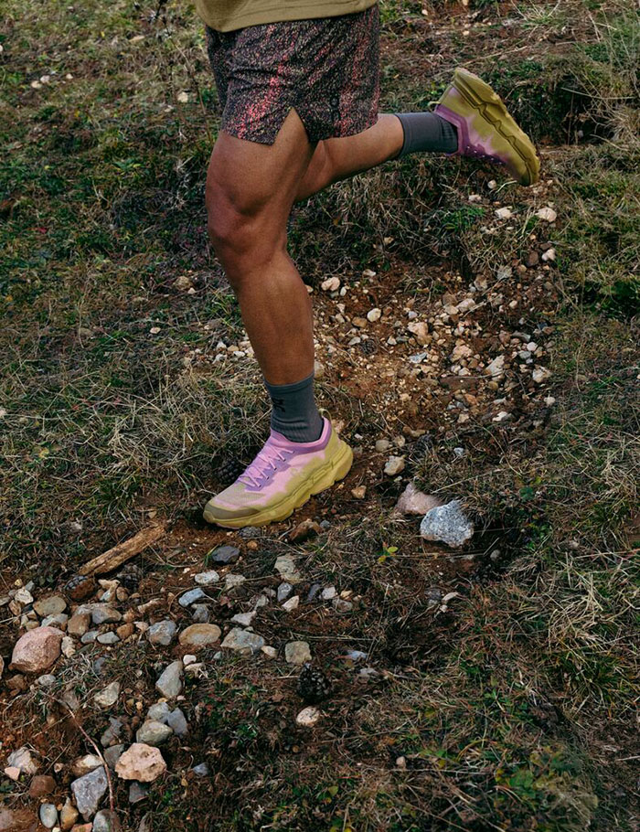 在设计美学上,Cloudsoma系列精准契合当下 Gorpcore 户外机能风潮,实现越野硬核性能与城市潮流基因的双向融合。设计灵感汲取自山野的自然粗砺质感,线条利落、质感硬朗,既能够支撑跑者征服险峻陡坡、探索荒野小径,也能适配城市通勤、街头漫步、休闲出行等日常场景,打破专业越野鞋与城市穿搭的边界,满足当代消费者一双鞋适配多场景的核心诉求。