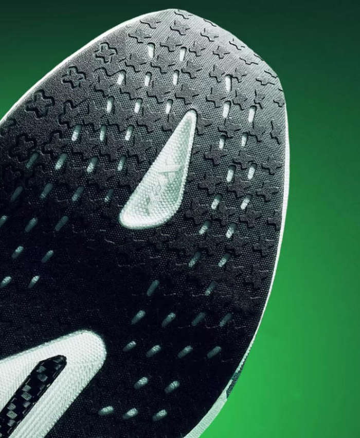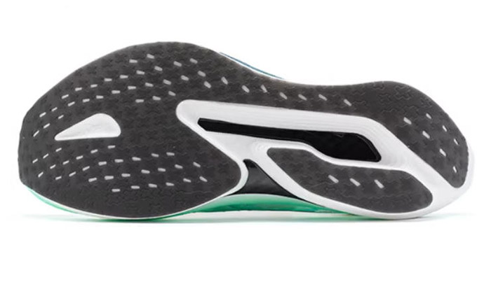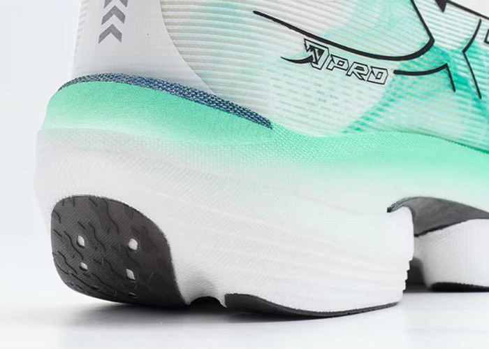 大底采用全掌分区 CPU 材质 + AI底纹设计,作为旗舰级防滑耐磨方案,前后掌分区底纹针对性强化重点受力区域的抓地与耐用性。实测数据显示,相较常规橡胶跑鞋,其干地止滑性能提升49%、湿地止滑性能提升69%,DIN 耐磨值提升85%,即便在雨天竞速、大量重复训练场景下,依旧保持出色抓地与耐用性,雨战也可放心加速。
