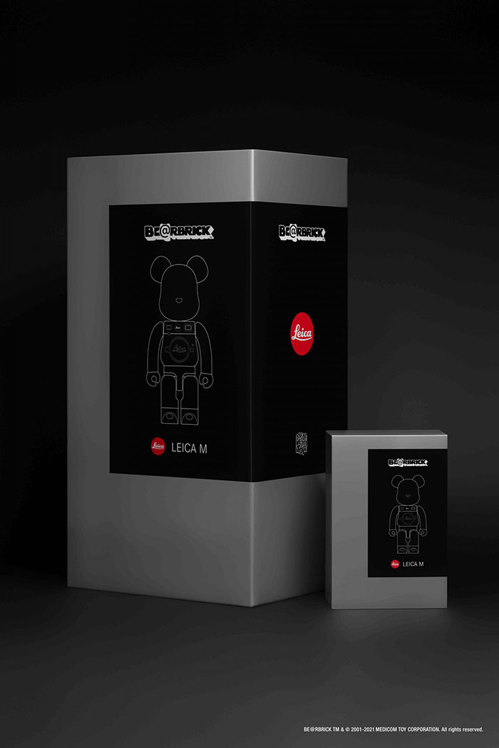 LEICA x MEDICOM TOY BE@RBRICK「M」不仅拥有别具一格的设计,更兼具了实用性。100% 和 400% 尺寸的组合套装配有徕卡独家定制的相机绳和多功能相机包。