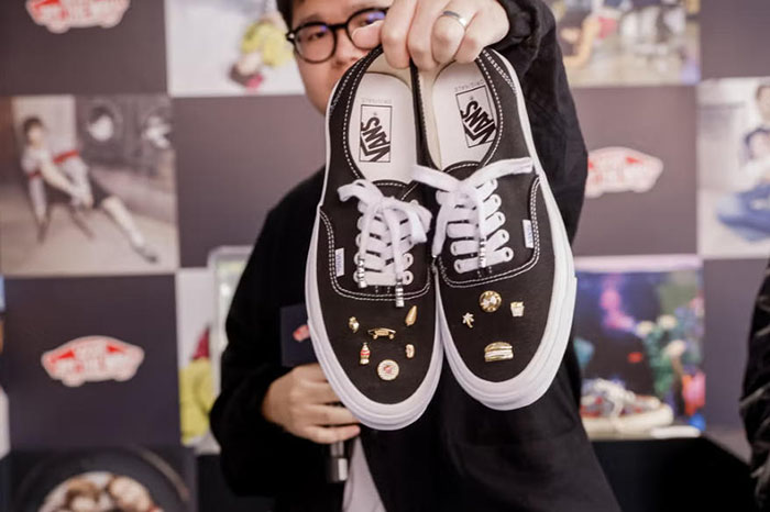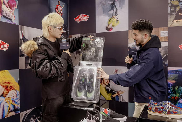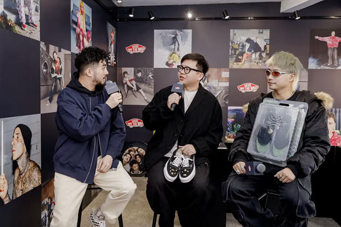 为搭建潮流爱好者深度交流的文化平台,活动开幕首日重磅打造「起范儿会客室」先锋对谈环节。活动由 MC Ray 担纲主持,特邀国内顶尖 VANS 收藏家 Eason、潮流品牌 Ecosys 主理人及创意总监 Kai 亲临现场。两位嘉宾均携为本次活动专属定制的 Remake Authentic 鞋款亮相,以鞋为媒展开跨界对话。深耕 VANS 文化与收藏领域多年的 Eason,系统分享 Authentic 六十载的设计演变与文化价值;拥有前沿设计视野与街头实践经验的 Kai,则从潮流创作、品牌运营视角解读鞋款的当代创新表达。双方从收藏、设计、文化传播等多元维度,剖析 Authentic 跨越半世纪仍保持活力的核心魅力,为现场观众呈现一场兼具专业深度与态度表达的文化思辨,填补国内街头潮流垂直领域深度对话的空白。