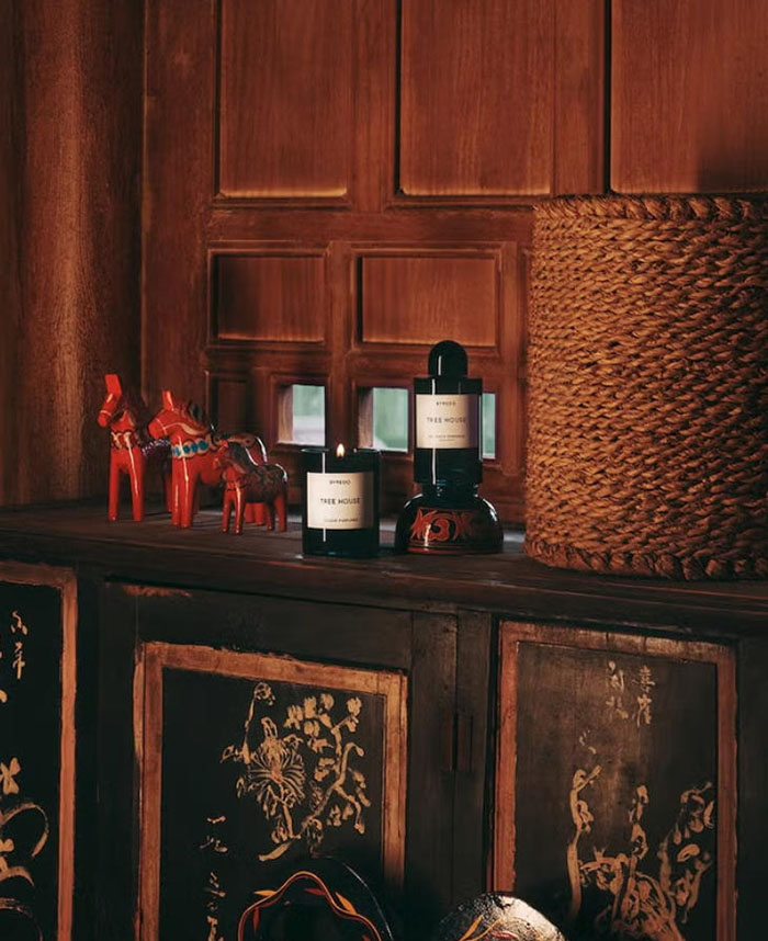 香氛作为系列的灵魂所在,每一款都承载着独特的情感与记忆。BYREDO「柏芮朵」 的经典爆款「Rose of No Man’s Land 无人区玫瑰」依旧是系列中的温情担当,柔和的玫瑰香气裹挟着淡淡的木质底蕴,如同无声的陪伴与坚定的庇护,以熟悉又治愈的气息,守护着每一次久别重逢的感动;「Desert Dawn 破晓之际」则以开阔明亮的香调铺展天地,柑橘的清新与木质的沉稳交织,仿佛黎明时分的第一缕晨光,唤醒探索未知的勇气,迎接新年的无限可能。当暮色四合,「Night Veils 夜幕系列」登场,深邃醇厚的香气层层包裹,构筑出宁谧私密的沉思空间,让疲惫的心灵得以安放;而「Tree House 树屋」与「Bibliothèque 图书馆」两款家居香氛,则为团圆时刻的空间注入别样质感 —— 前者复刻风蚀古木的温润气息,宛如隐匿于林间的心灵庇护所;后者重现深色皮革与泛黄书页的沉静馨香,将时光封存于一室之内,让每一次呼吸都成为与过往岁月的温柔对话。