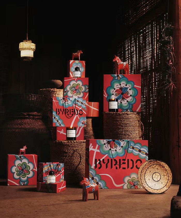 在包装设计上,BYREDO「柏芮朵」 更是巧思尽显。限定包装以鲜明热烈的赤红为主色调,搭配柔和雅致的青绿点缀,如同节庆时节的红灯笼与松枝相映成趣,瞬间拉满年味氛围。达拉木马的经典纹样被巧妙融入设计之中,线条流畅灵动,既保留了北欧手工艺术的简约纯粹,又暗藏东方美学的含蓄韵味,传统与现代在此碰撞共生,让每一瓶香水都成为兼具实用与收藏价值的艺术品。同步推出的礼享限定臻礼系列同样诚意满满,包含设计精致的红包、质感温润的陶瓷挂饰与实用美观的旅行收纳包,每一件都承载着牵挂与联结,是岁末送礼、传递温情的绝佳选择。