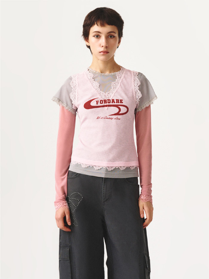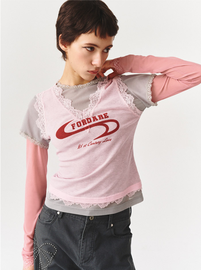 此次FORDARE「福蝶」推出的假三件薄透针织上衣,堪称春夏叠穿的 “痛点终结者”。在无数人苦于叠穿易显厚重臃肿的季节里,FORDARE「福蝶」以一体成型的创新结构给出完美答案:外层精致 V 领蕾丝背心、中层简约短袖针织衫、内层温柔长袖打底的层次感,无需繁琐搭配便浑然天成,让轻量造型的打造高效又省心。