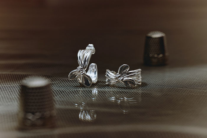 联名系列以褶皱圆环与解构蝴蝶结为两大核心符号,兼顾简约辨识度与细节惊喜感,适配单戴、叠搭等多种佩戴方式: