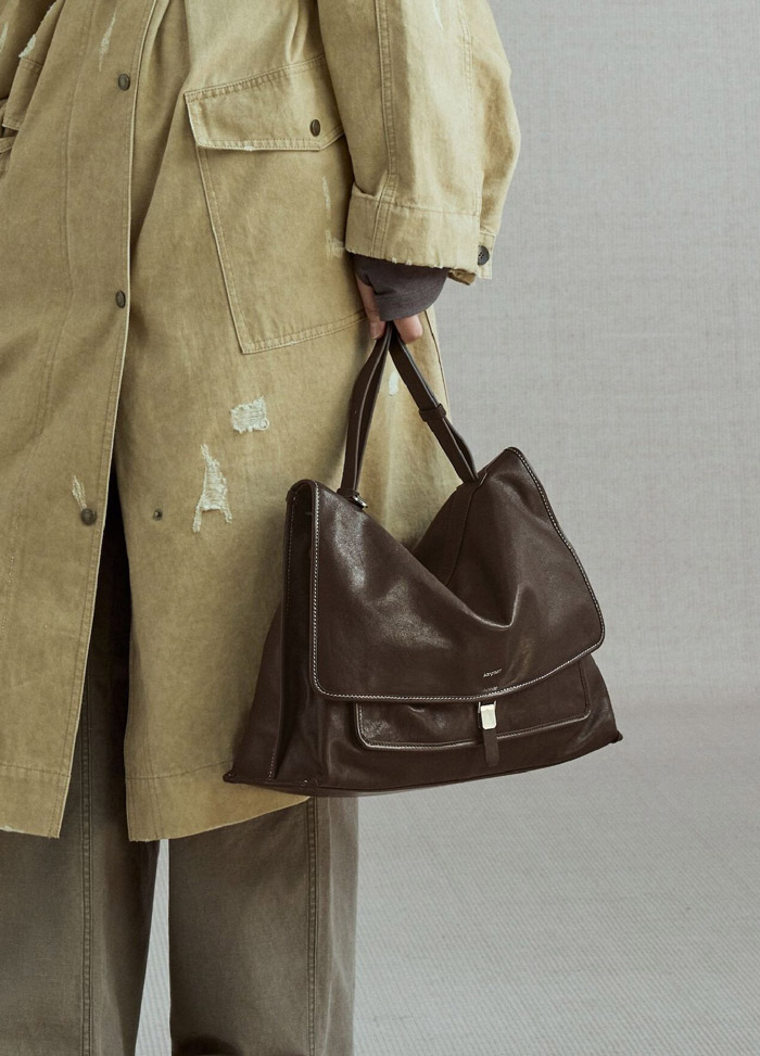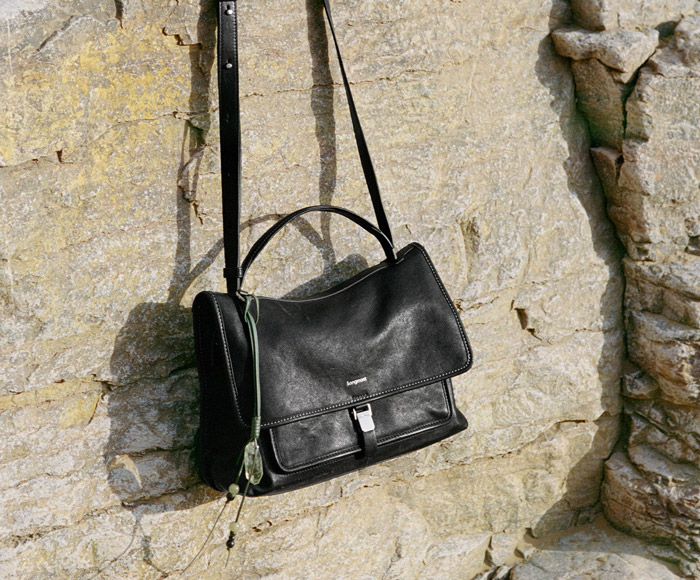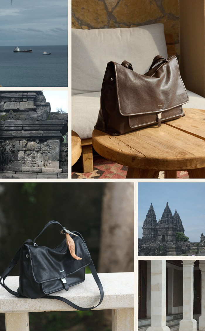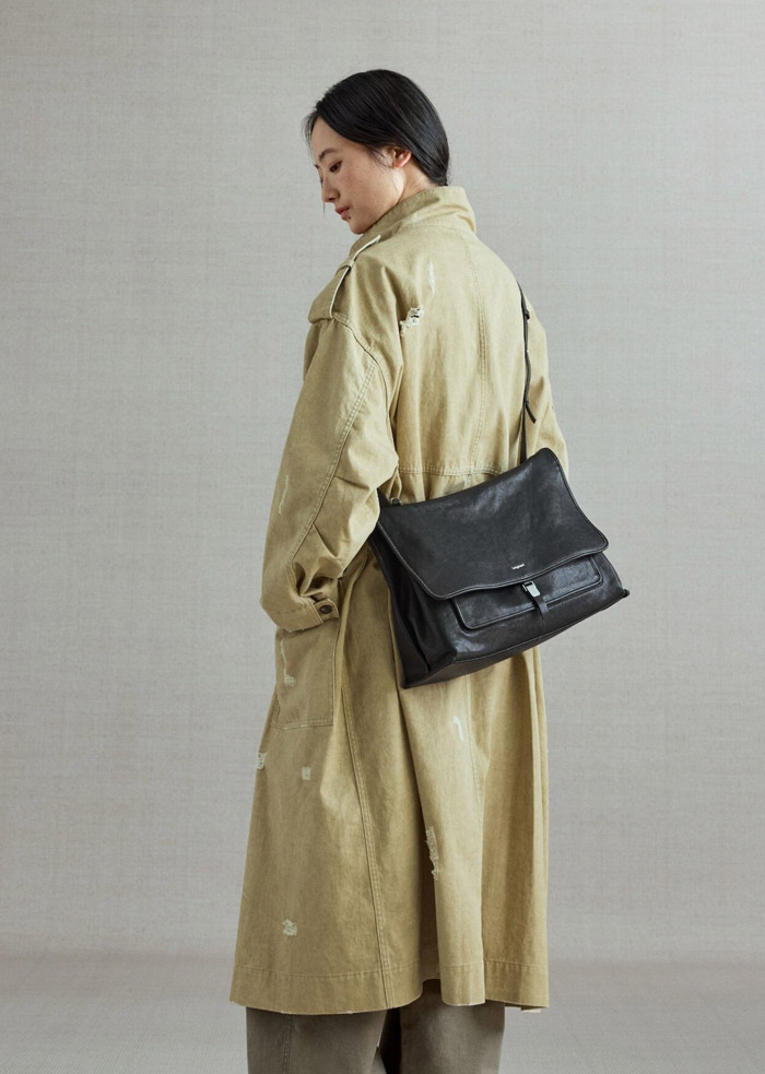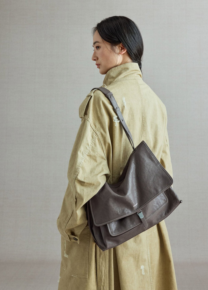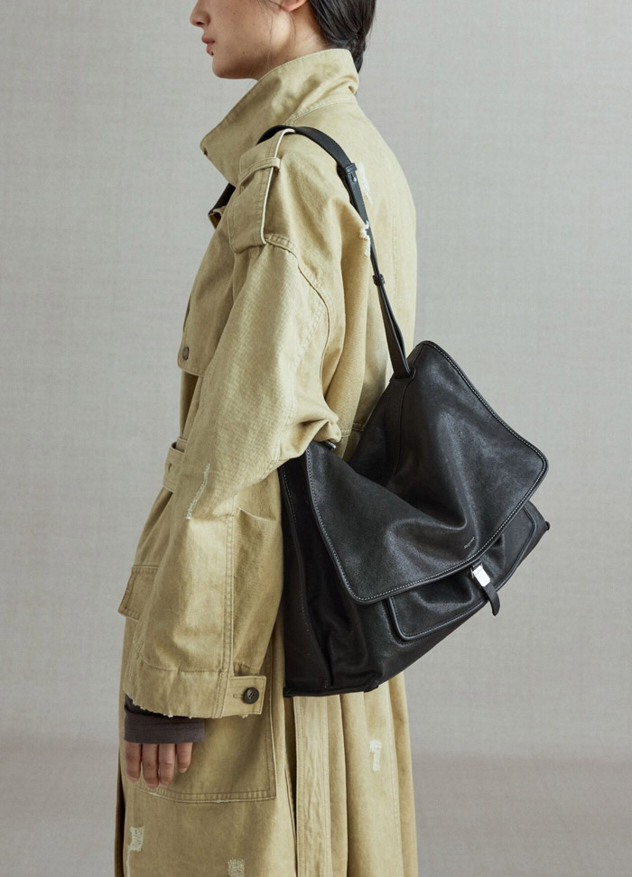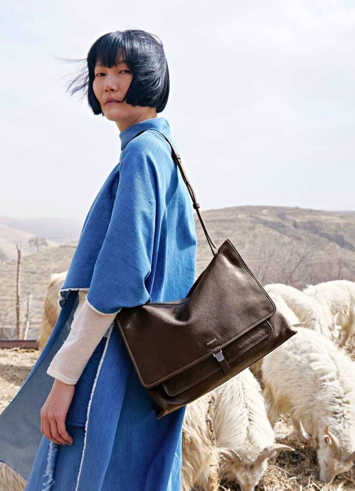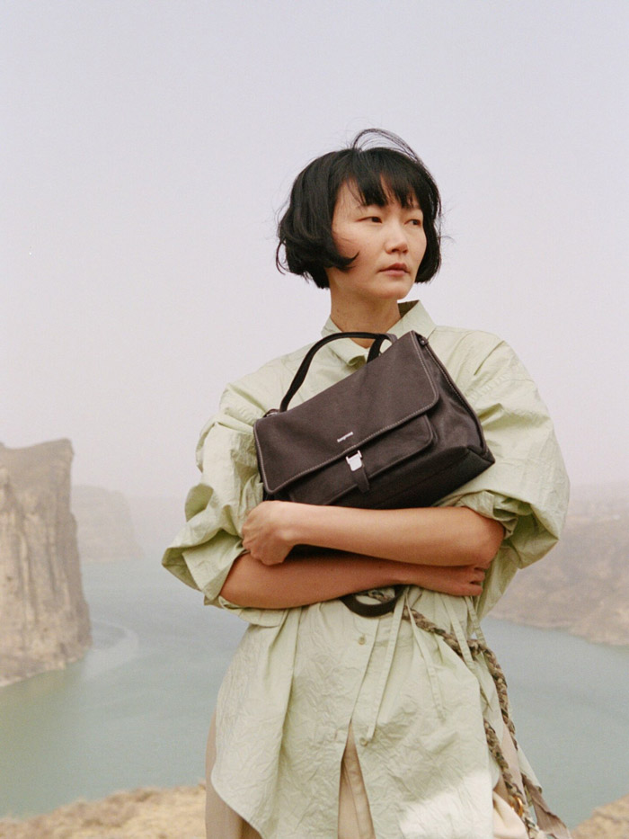 本次推出的山行邮差包,在设计上以传统「书笈」为灵感核心,采用标志性 L 型骨架支撑结构,从根源上解决传统软质包袋易软塌、装物变形、背负易累的行业痛点。该结构让包身柔韧有型,装载物品后依旧保持利落轮廓,同时兼顾背负舒适度,实现美学形态与实用功能的双向平衡。包盖采用自然流线型曲线设计,为极简邮差包型增添随性格调,弱化硬朗感,更贴合当代女性的日常审美与穿搭需求。