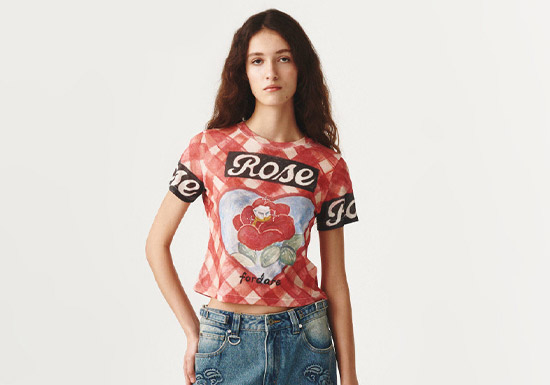 手绘复古系列:红格玫瑰印花、做旧牛仔纹理、复古字母标语等元素,以手绘笔触呈现,自带 90 年代美式复古氛围,短款修身版型完美适配高腰裤装,轻松塑造辣妹比例。