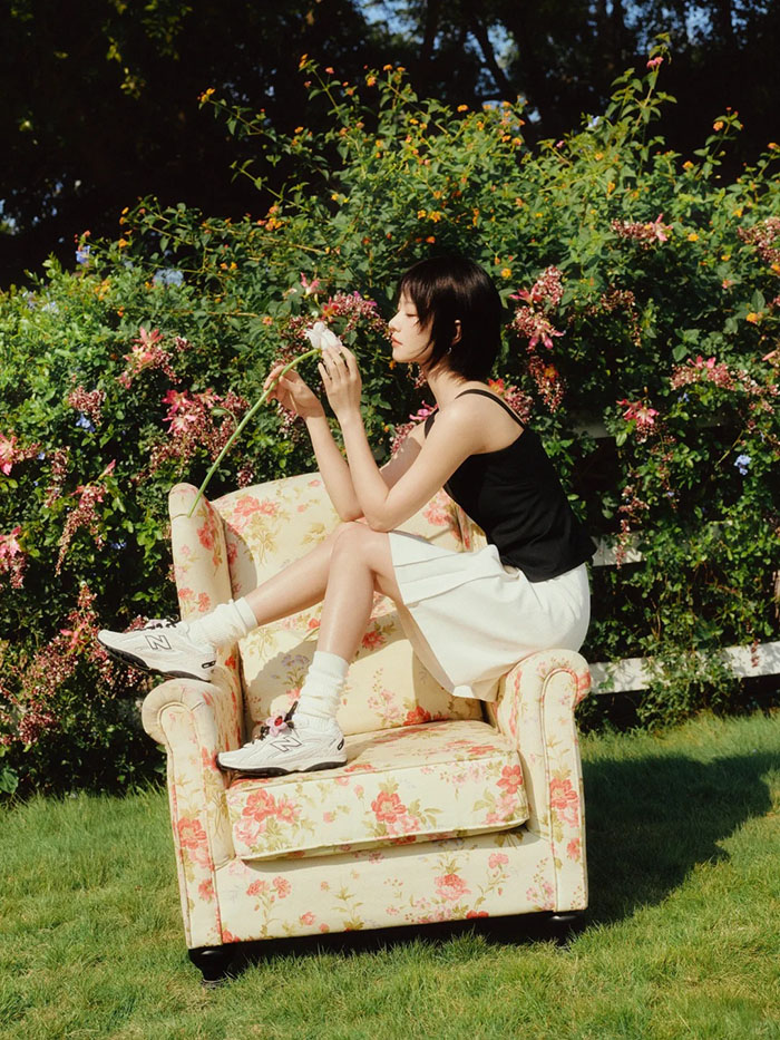 为了让这份春日美学具象化,本次BEAST野兽派 x New Balance联名特别邀请青年演员李庚希演绎专属合作大片。镜头之下,她化身春日花园里的优雅采花女,脚踩 204L 联名鞋款于繁花间悠然漫步,步履间尽是轻盈自在,鞋款的灵动质感与春日的温柔氛围悄然共鸣,将「春日漫叙 步履成诗」的创作内核诠释得淋漓尽致,也让观者直观感受到这款鞋款与春日场景的高适配度。