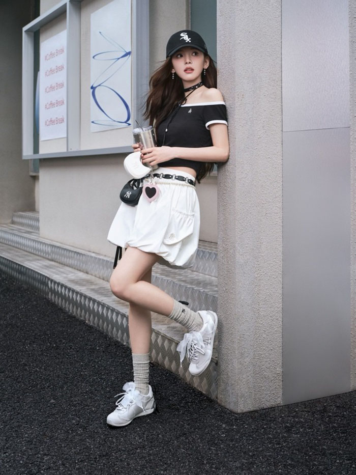 作为 MLB 潮流品牌代言人,章若楠自带的甜酷气质与这款鞋子的设计内核高度契合。她上脚演绎时,将芭蕾的温婉灵动与街头的随性率真融为一体,步履间尽是柔中带酷的独特魅力,既展现了少女的清新灵动,又传递出潮人的个性态度,让仙风芭蕾薄底鞋成为兼具颜值与风格记忆点的春日单品。