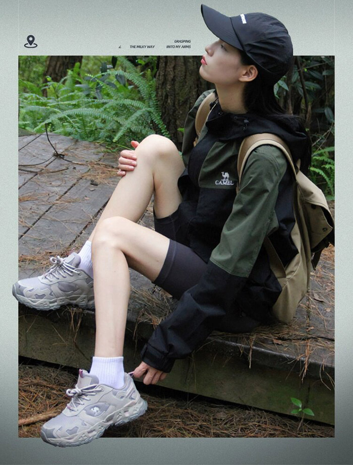 当前轻户外人群以学生、都市通勤族、周末徒步爱好者为主,这类用户普遍面临脚趾磕碰、脚踝不稳、路面湿滑、足部闷汗、鞋履渗水等户外痛点,同时不愿为品牌溢价买单。骆驼魔岩登山鞋精准切入这一需求,从结构防护、核心科技、材质工艺、外观设计等维度全面优化,既满足山林徒步、石阶行走、泥泞小径等户外场景的专业要求,也能无缝适配城市通勤、日常出街,实现 “户外硬核、日常百搭” 的双重价值。