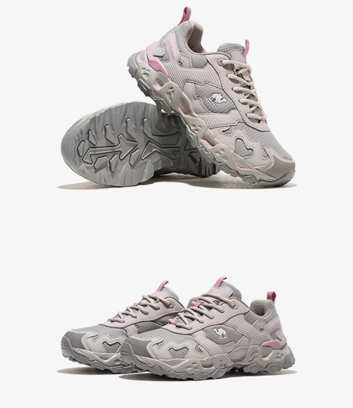 外观设计上,骆驼魔岩登山鞋平衡户外实用性与潮流审美,推出灰粉拼色、经典黑色、百搭卡其色三款配色,既满足户外场景耐脏、易打理的需求,又能适配休闲通勤、结伴出行等多元风格。男女同款的通用版型,进一步拓宽了适用人群,成为情侣穿搭、家庭出行的理想选择。