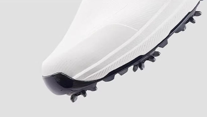 大底为高尔夫运动专属研发,搭载多组多向旋转式鞋钉,提供强悍地面抓地力,有效防范挥杆急转时的侧滑风险;大底采用高耐磨橡胶材质,搭配可更换式鞋钉设计,可根据硬地果岭、松软球道等不同场地灵活适配;中底采用专业缓震材质,高效吸收落地冲击力,缓解长时间行走带来的足部疲劳。
