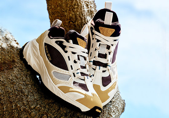 笑脸迷彩系列将经典迷彩元素与笑脸 ICON 结合推出三款鞋款。新款 NiteBall 鞋款以天蓝色迷彩为基底,同时以橙色勾勒鞋底流线型线条轮廓,明快有活力;Pro Model 鞋款的鞋面设计是不同明度的灰色组成的迷彩,笑脸也以同色系淹没在迷彩之中;Rivalry Rm Lo 鞋款在经典的绿色迷彩之中融入了荧光黄色的笑脸,彰显街头气息。