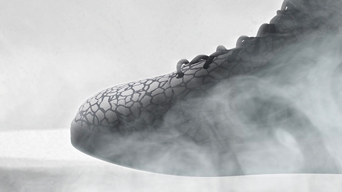 该虚拟鞋款以 atmos Elephant 为灵感,以「如果你给运动鞋赋予生命会怎样」为主题,使用 atmos 标志性的大象图案,鞋身上的「B」与「Atoms」发出银色光亮,鞋款在烟雾环绕中现身。