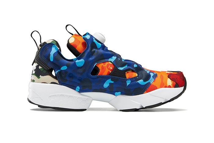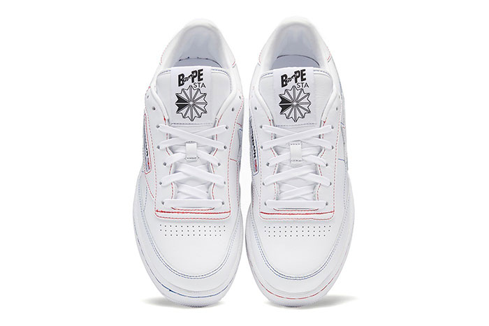 此次联名系列中将推出 Instapump Fury 和 Club C 85 两款鞋型。前者设计上将品牌标志性的 COLOR CAMO、1ST CAMO 图样注入鞋面,鞋舌处 Pump 按压钮上则有猿人头 Logo 象征身份,后者则采用俐落的白色皮革外型,搭配鲜明蓝红缝线,两者都在鞋舌以及鞋跟处附上 BAPE STA 徽标。