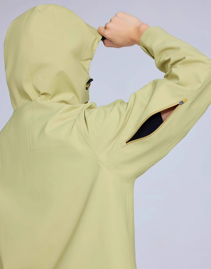 在设计美学与穿着体验上,雨壳2.0熊猫冲锋衣精准踩中当下的潮流审美,将机能风与无性别设计完美融合。微阔插肩袖的版型搭配符合人体曲线的正肩廓形,既打造出酷飒的机能风视觉效果,又让上身毫无束缚感,大幅度的户外运动也能舒展自如,无性别设计更是让男女皆能轻松驾驭,适配不同的身形与穿搭风格。细节处的巧思,更彰显出品牌的用心与质感:刺绣熊猫章 LOGO 精致立体,成为衣身的点睛之笔,既凸显品牌辨识度,又让整体设计更具趣味;品质拉链保障拉合顺畅不卡壳,兼顾实用性与耐用性;双侧拉链口袋,让户外小物件的收纳既便捷又安全,避免运动中物品掉落;可调节下摆卡扣则能根据需求自由收紧,进一步强化防风效果,让细节为户外体验加分。