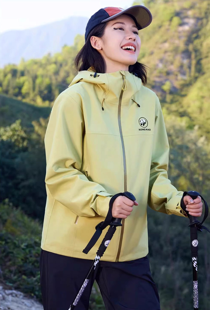 能实现如此出众的防护与透气平衡,核心得益于熊猫户外独家研发的熊猫 “仿生膜” 科技,这也是品牌深耕户外仿生科技矩阵的重要成果。研发团队以大熊猫无毛孔的特殊皮肤结构为灵感,结合大熊猫在自然环境中的活动习性,历经反复打磨打造出这一轻薄却极具防护力的仿生膜材,真正实现了 “风雨进不来,气能出得去” 的户外需求。薄薄一层仿生膜,凝聚着自然灵感与科技智慧,不仅让冲锋衣的防水、耐磨性大幅提升,更通过毛细效应实现了高强透湿,让科技为户外体验赋能。