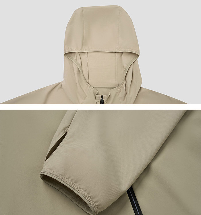 连帽设计贴合头部轮廓,运动中稳固不滑落,实现全维度阳光遮挡;袖口与下摆做松紧收口处理,既防止微风倒灌,又长效维持衣型挺括;背部特设大面积透气裁片,大幅提升空气对流效率,快速导出热气与汗液,让身体时刻保持干爽清爽,彻底告别闷汗黏腻的糟糕体验。袖口拇指孔细节,进一步延伸防晒覆盖范围,细节处尽显专业考量。