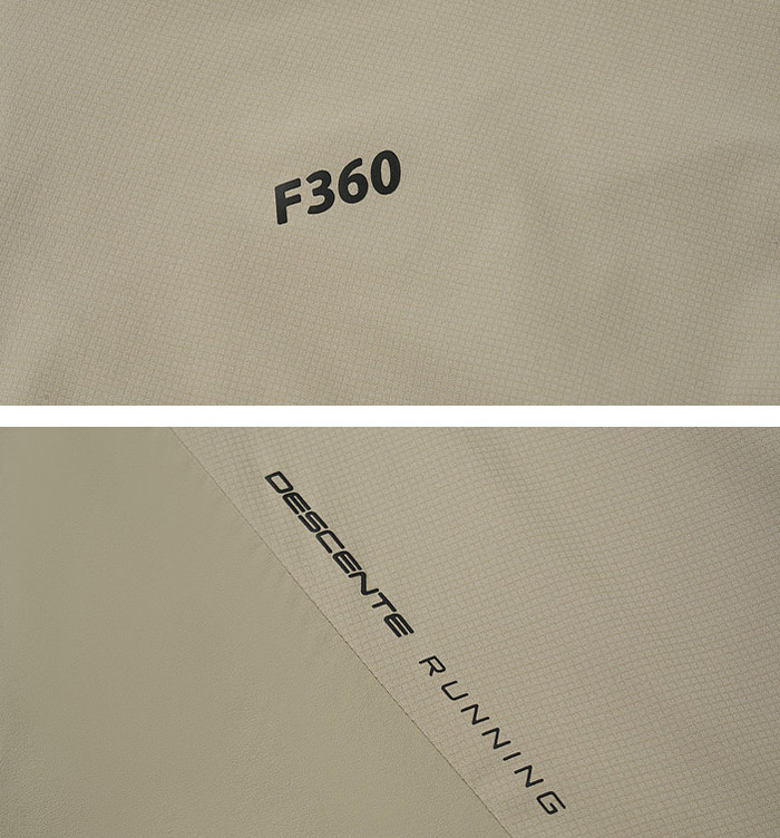 外观延续迪桑特简约利落的设计语言,无冗余装饰,衣身正面 “DESCENTE RUNNING” 字样、背部 “F360” 标识与经典箭头 Logo,以低调质感呈现,既强化专业运动属性,又赋予单品独特时尚辨识度。