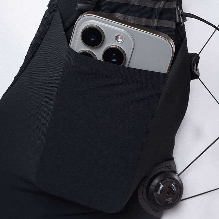 搭载创新ADF全维度拨盘调节系统,一键实现6点式精准调校,无论身形宽窄,都能在奔跑中快速微调松紧,实现动态贴身锁定,即便翻越陡坡、疾速下坡,包体也稳如一体。搭配BI-FIX 两级水壶收紧系统与长款软水壶专属适配设计,双重固定杜绝水壶晃动,饮水顺手且不破坏奔跑平衡,稳定感拉满。