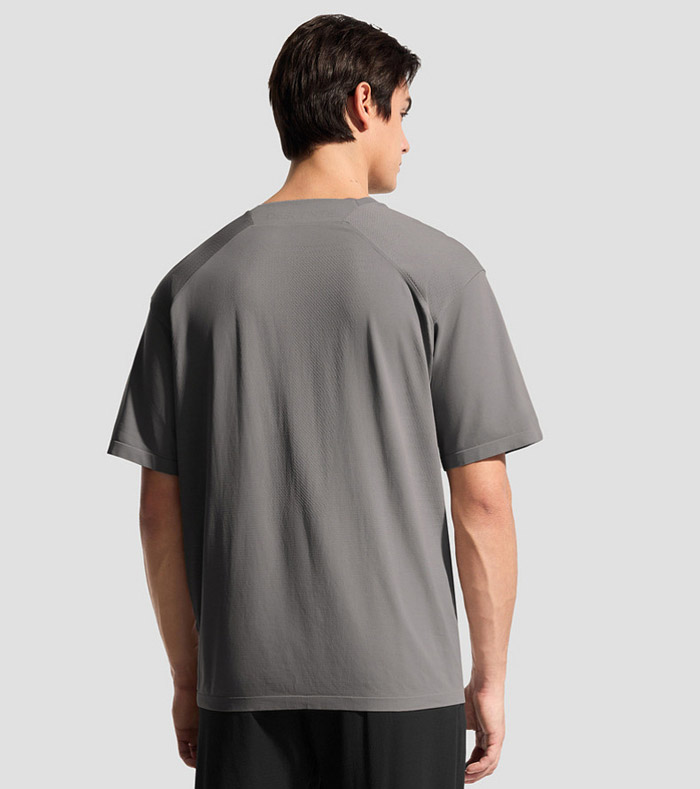 它采用 COMFORT 宽松落肩版型,彻底挣脱肢体限制,为各类大幅度训练预留充足空间,舒展无压力;经典圆领贴合颈部,肩部透气网眼拼接大幅提升活动灵活性与局部透气性,快速导出热量与湿气,保持身体干爽。后背压印品牌标识、袖口同色系压胶徽标,简约低调不突兀;甄选柔软针织面料,垂坠感出众,沉稳灰色调百搭耐看,既能支撑专业健身训练,也能无缝融入日常通勤、休闲出行,成为夏日衣橱的百搭刚需款。