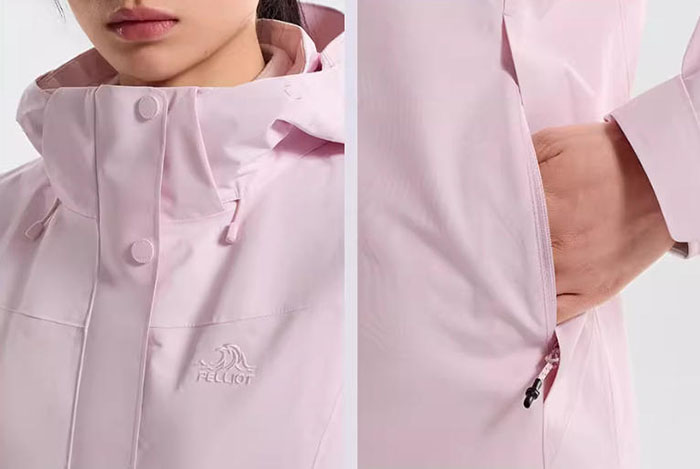 工艺层面,产品采用全衣接缝压胶处理,通过高性能密封压胶工艺强化衣身接缝处防护,彻底杜绝雨水从缝隙渗入,进一步提升防风、防渗水性能。同时搭载Teflon特氟龙三防科技,实现表面抗湿 5级、易去污性5级、拒油性能6级,既能阻隔湿冷细雨侵袭,又能有效抵御污渍、油渍附着,日常打理更便捷,适配学生群体与通勤族的实用需求。