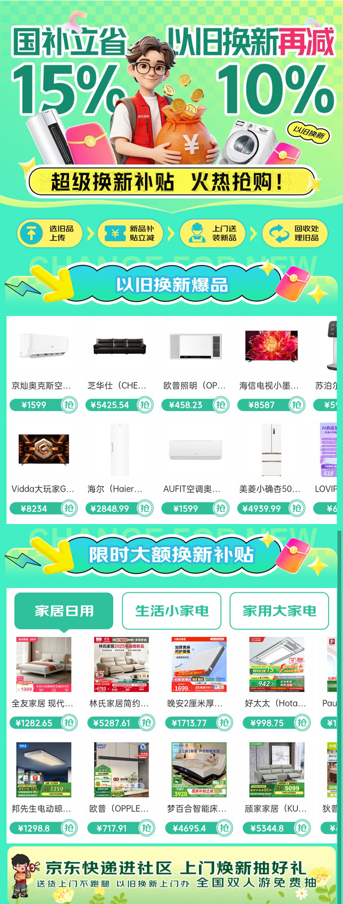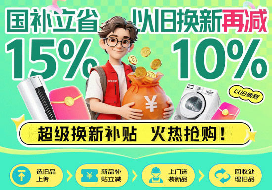 京东以旧换新补贴入口!国补立省15%,以旧换新再减10%!