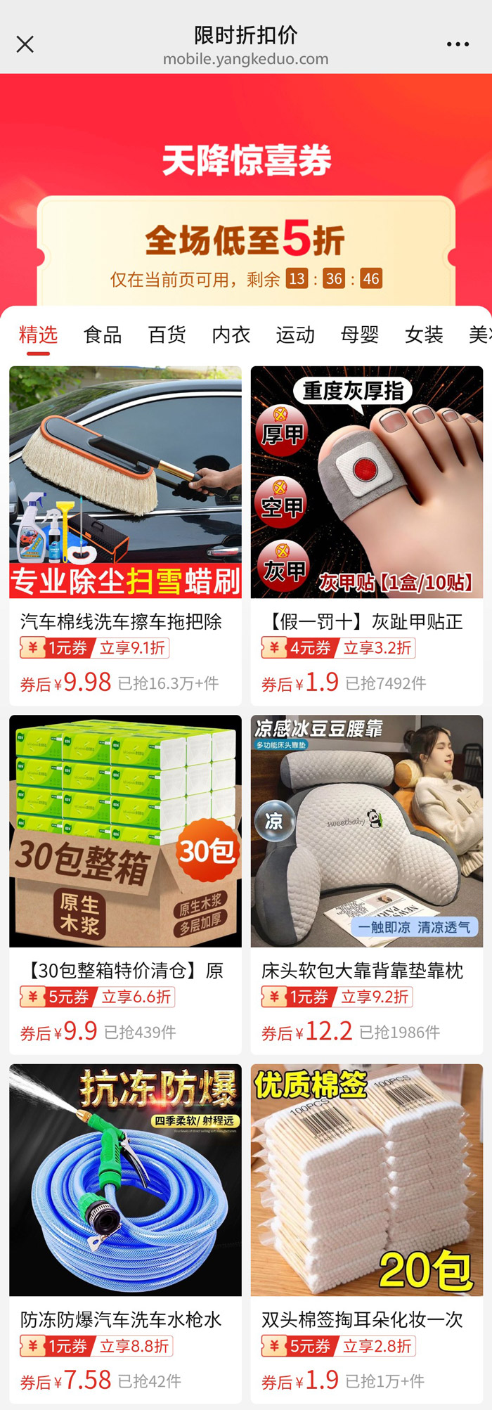 拼多多「天降惊喜券」限时折扣低至5折活动入口