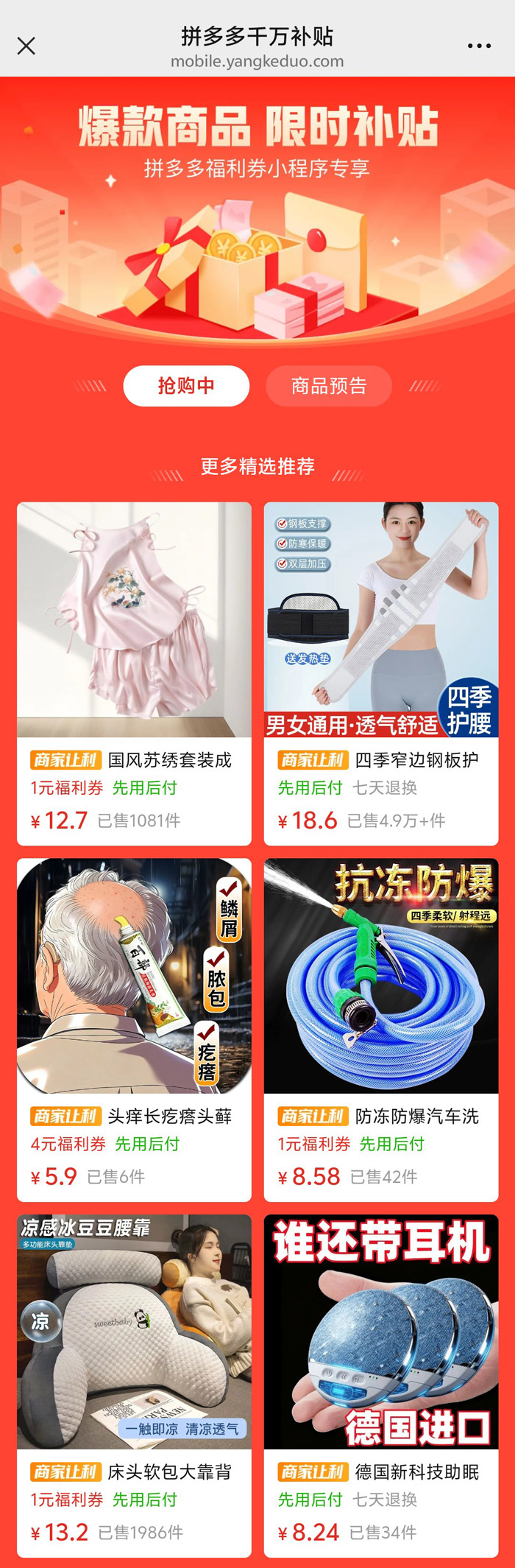 本次「千万补贴」活动贴心打造两大特色专区,精准匹配消费者的购物节奏,兼顾前瞻性与便捷性。商品预告专区如同好物前瞻站,提前揭晓即将登陆补贴专场的爆款尖货,让消费者从容锁定心仪好物,告别错过心仪单品的遗憾;抢购中专区则实时呈现火热开抢的补贴好物,海量爆款实时更新,轻松入手高性价比刚需品,购物体验更高效、更舒心。
