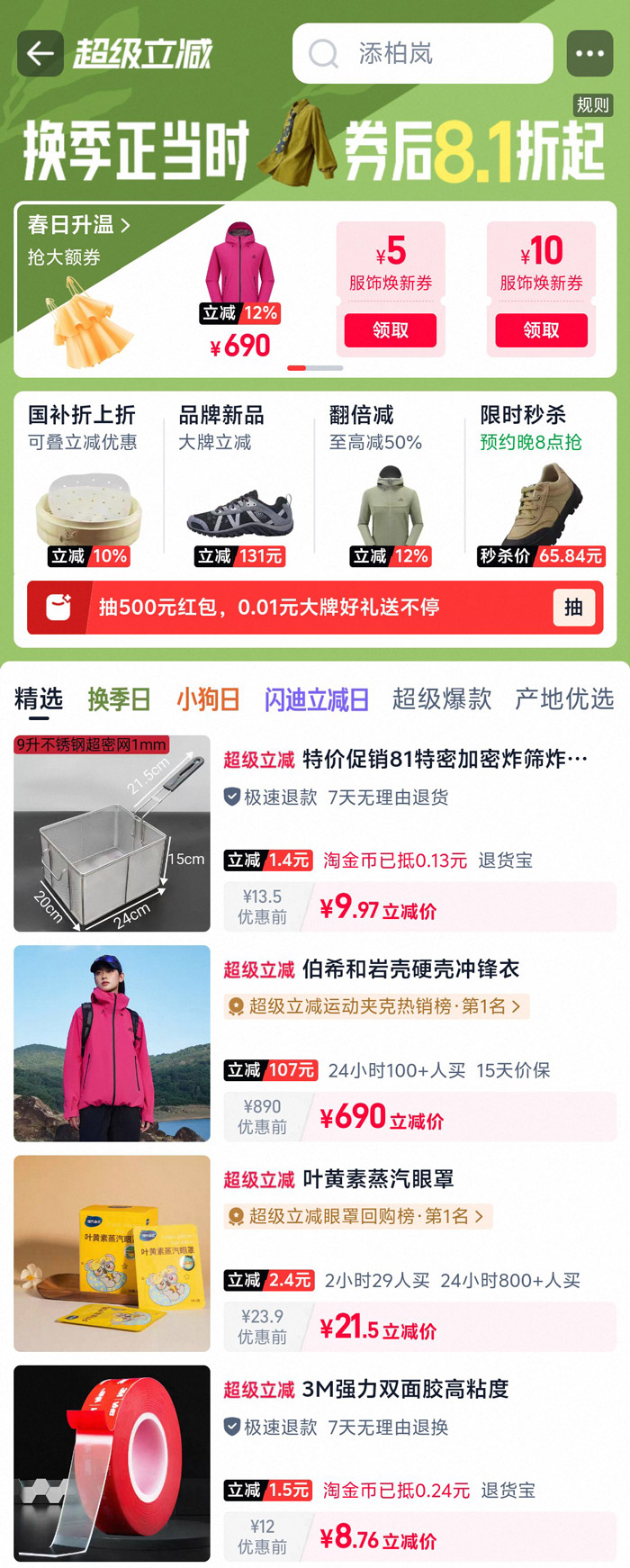 2026天猫换季正当时 超级立减券后8.1折起活动入口