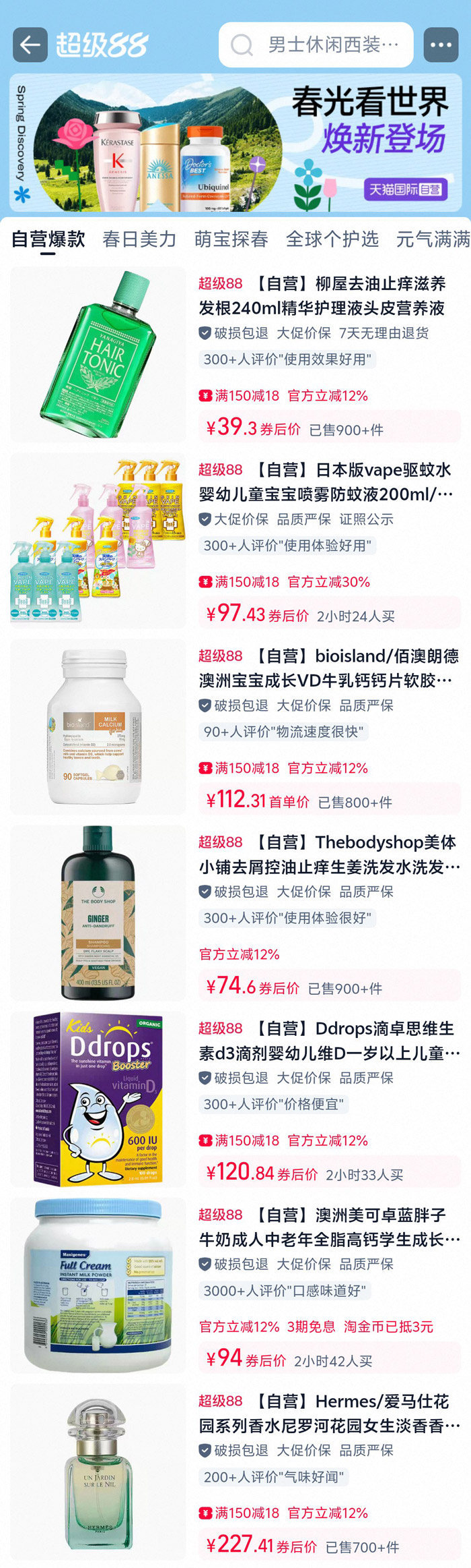 自营爆款专区:集结柳屋护发精华、VAPE 驱蚊水等全球口碑尖货,聚焦日常居家、出行防护等高频刚需,是大众消费者闭眼囤货的首选品类。