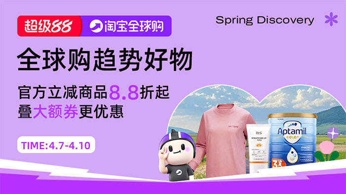 春季是生活焕新、消费需求集中释放的关键周期,消费者普遍面临换季穿搭更新、居家空间改造、运动装备升级、出行用品添置、品质配饰选购等核心痛点。针对家庭用户、年轻潮流群体、运动爱好者、海淘人群、装修业主、学生群体等多元消费主体的差异化需求,淘宝超级88活动打破品类边界,精准布局细分会场,将优惠与好物深度结合,既兼顾性价比刚需,也覆盖品质化、潮流化消费诉求,成为春季一站式购物的优质选择。